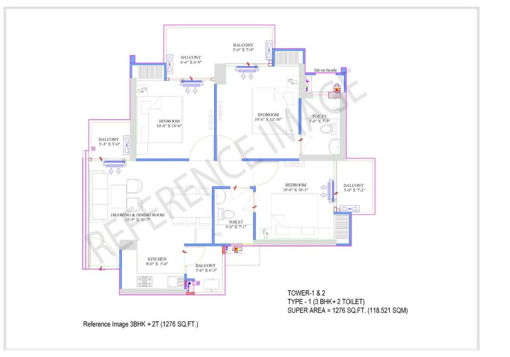 The floor plans at RG Pleiaddes are designed to make daily living simple and comfortable. The 3 BHK and 4 BHK layouts offer well-organized spaces with good ventilation, natural light, and minimal wastage. Each unit includes practical room sizes, functional kitchens, and spacious balconies, making homes easy to use and suitable for modern family needs.