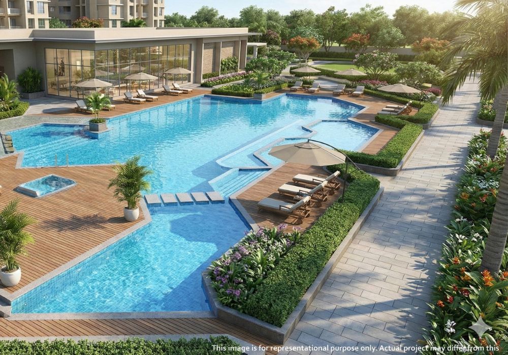 RG Pleiaddes gallery highlights modern high-rise towers, spacious balconies, lush green landscapes, and thoughtfully designed interiors. It also showcases premium amenities like a clubhouse, pool, and open spaces, reflecting a comfortable, luxurious, and well-planned lifestyle for modern urban living.
